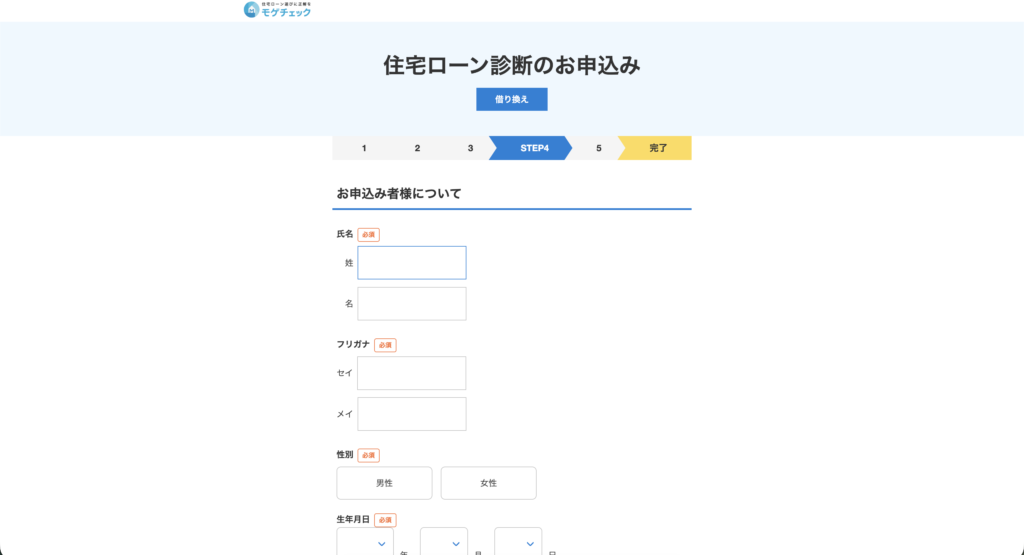 STEP4では、自分自身の氏名や生年月日などの個人情報を入力します。