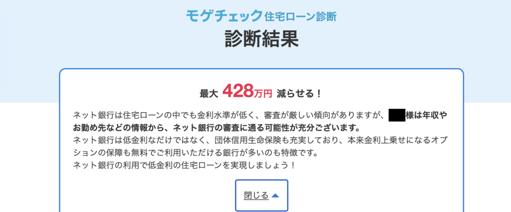 「住宅ローンの診断なんて大変そう……」と身構えていた私ですが、実際にやってみたところ、トータル5分程度でサクッと終わってしまいました。 カップラーメンを待つくらいのわずかな時間で、「数百万円」もの節約チャンスが判明すると思うと、やらない手はありません。